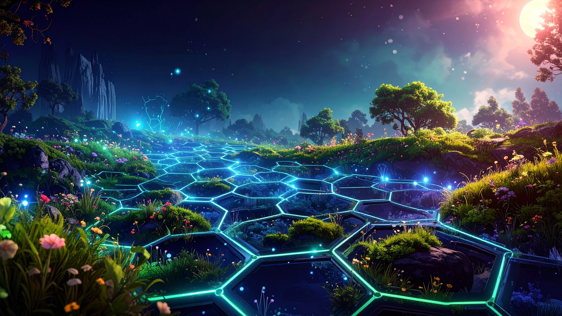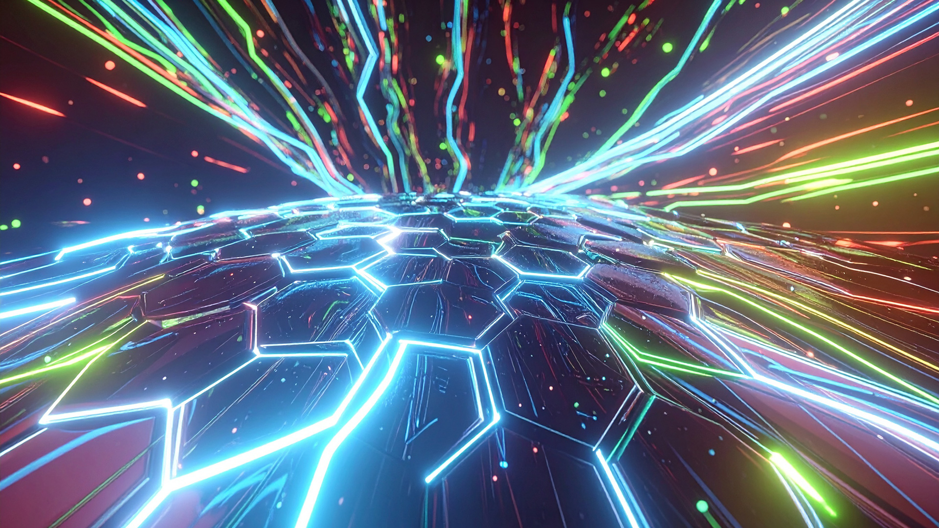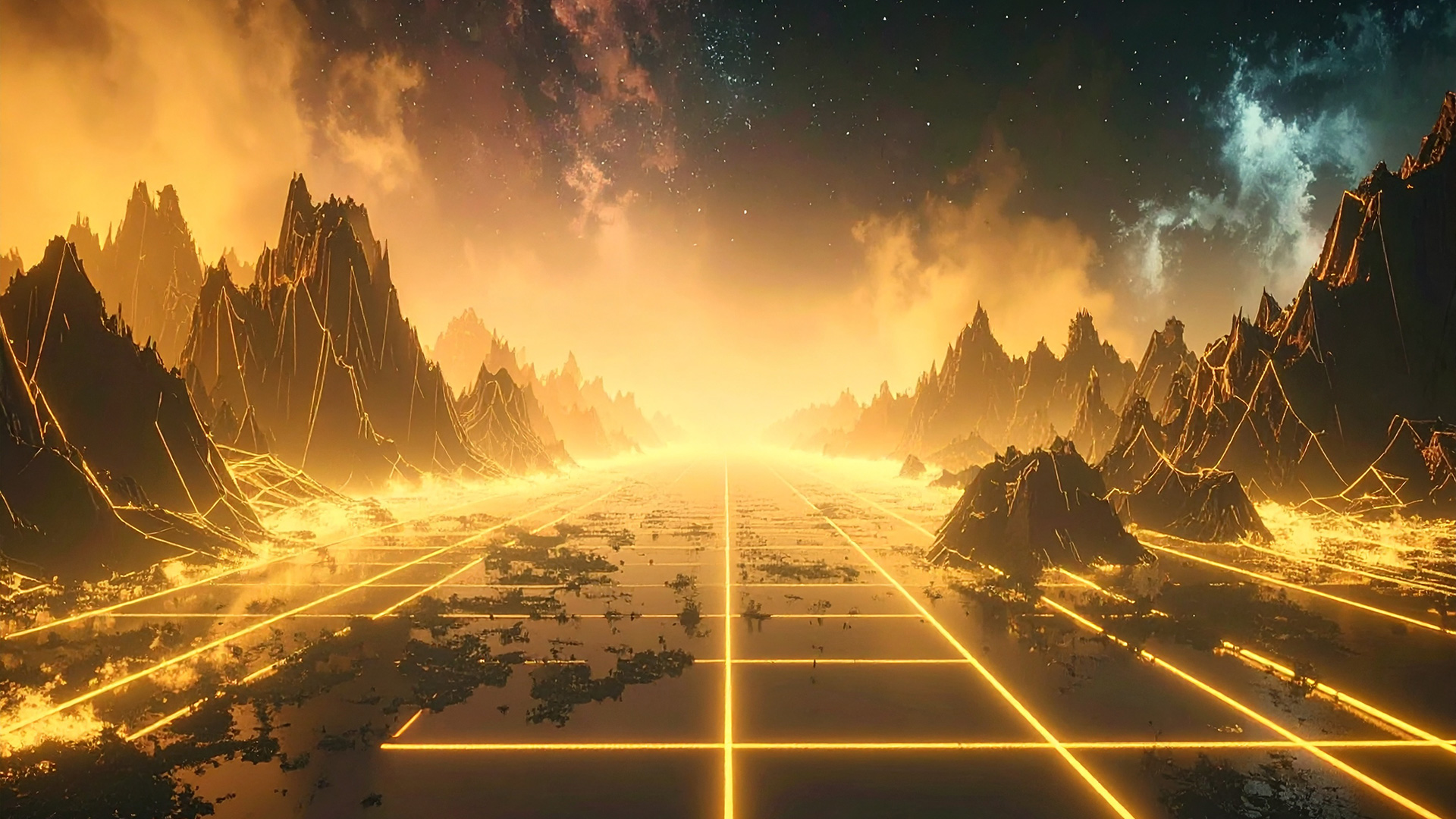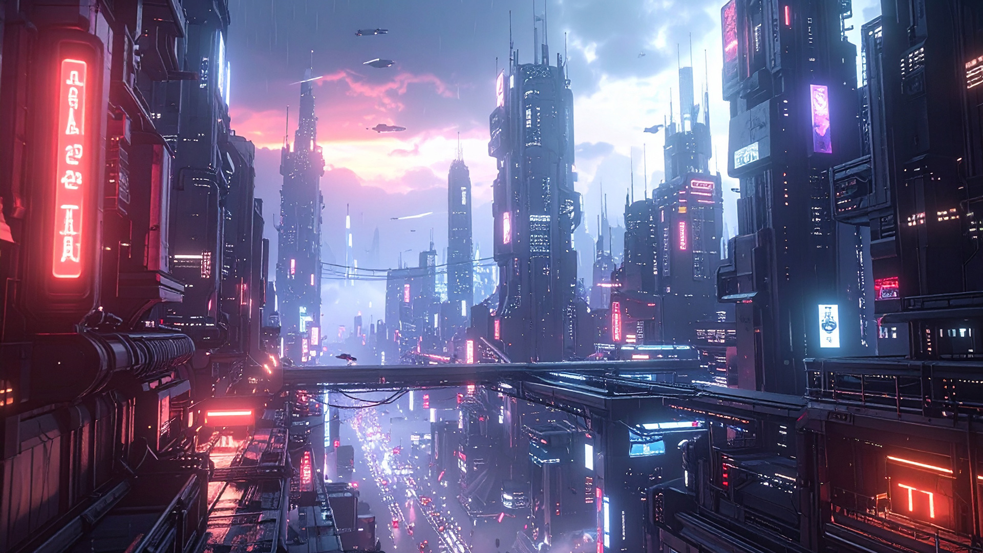 鮮やかなグリーンの光が網の目のように広がる、圧倒的な没入感の近未来都市を描いたイラストです。サイバーパンクな世界観を1920×1080ピクセルのフルHDサイズで表現しました。基盤のようなラインが走る地面と高層ビル群が、高度に発達したデジタル空間を演出。高画質でキレイなこのフリーイメージは、SF作品のバックグラウンドや最新技術を紹介するサイトのメインビジュアルに最適です。商用OK・登録不要で今すぐダウンロードして、あなたのデザインをかっこいい近未来仕様にアップグレードしましょう。