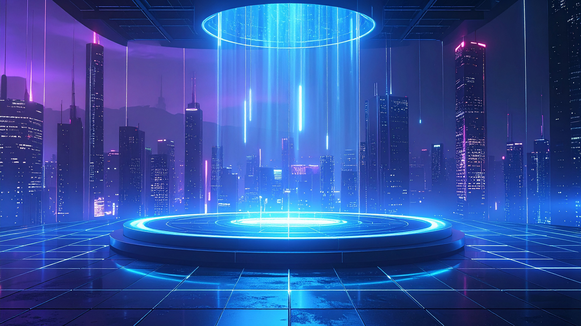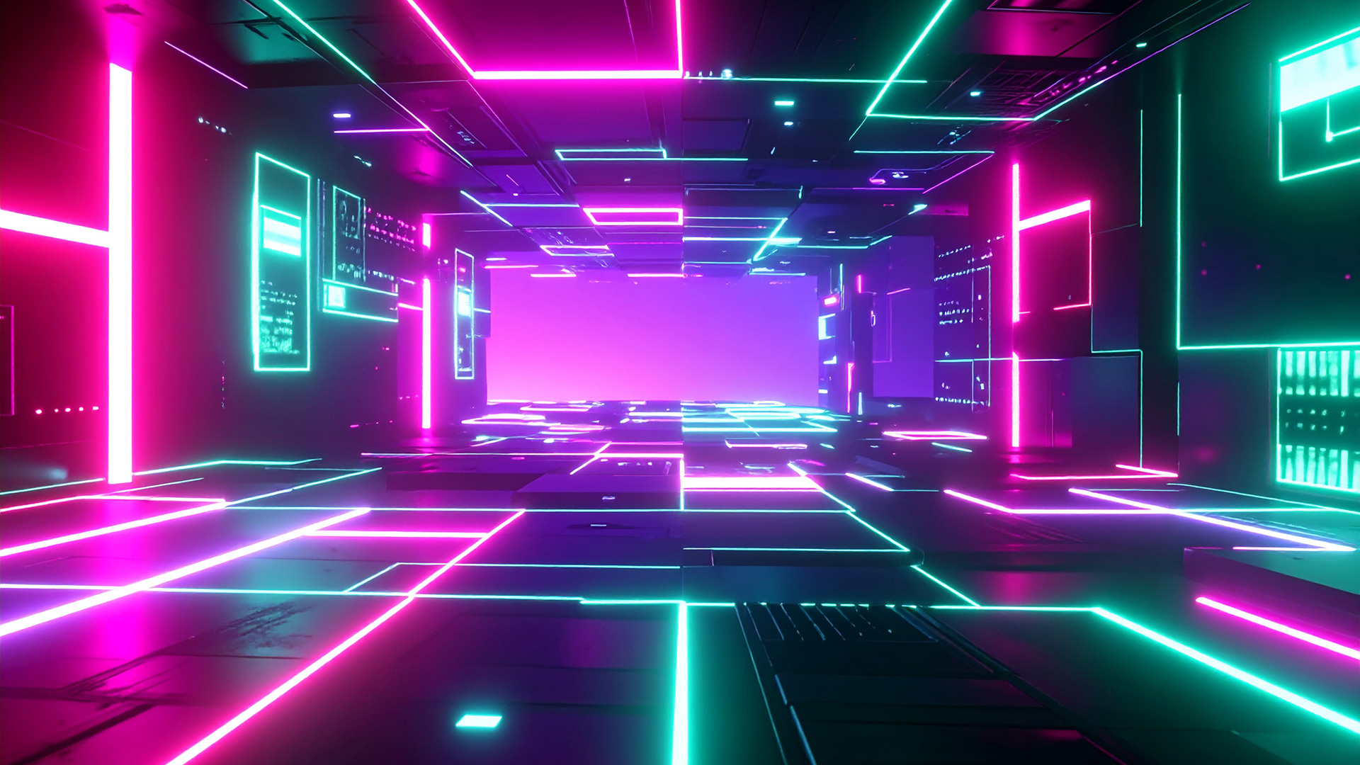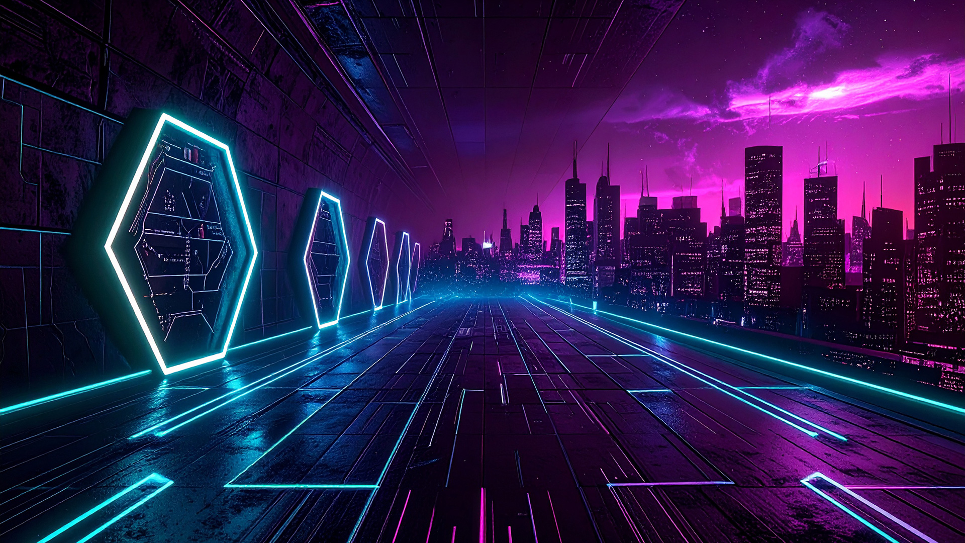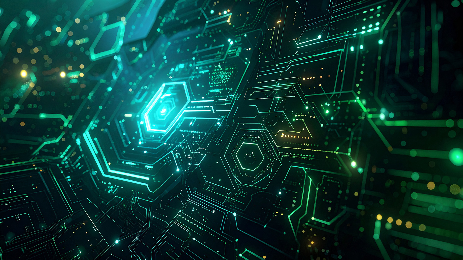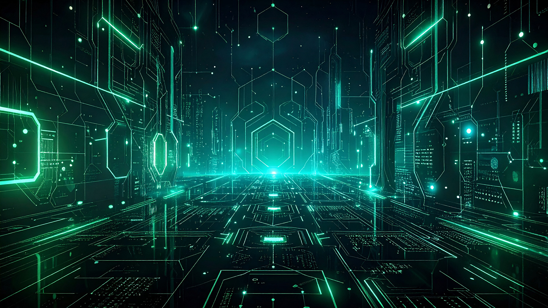 【無料】近未来のデジタル都市背景素材|サイバーパンクな緑の閃光