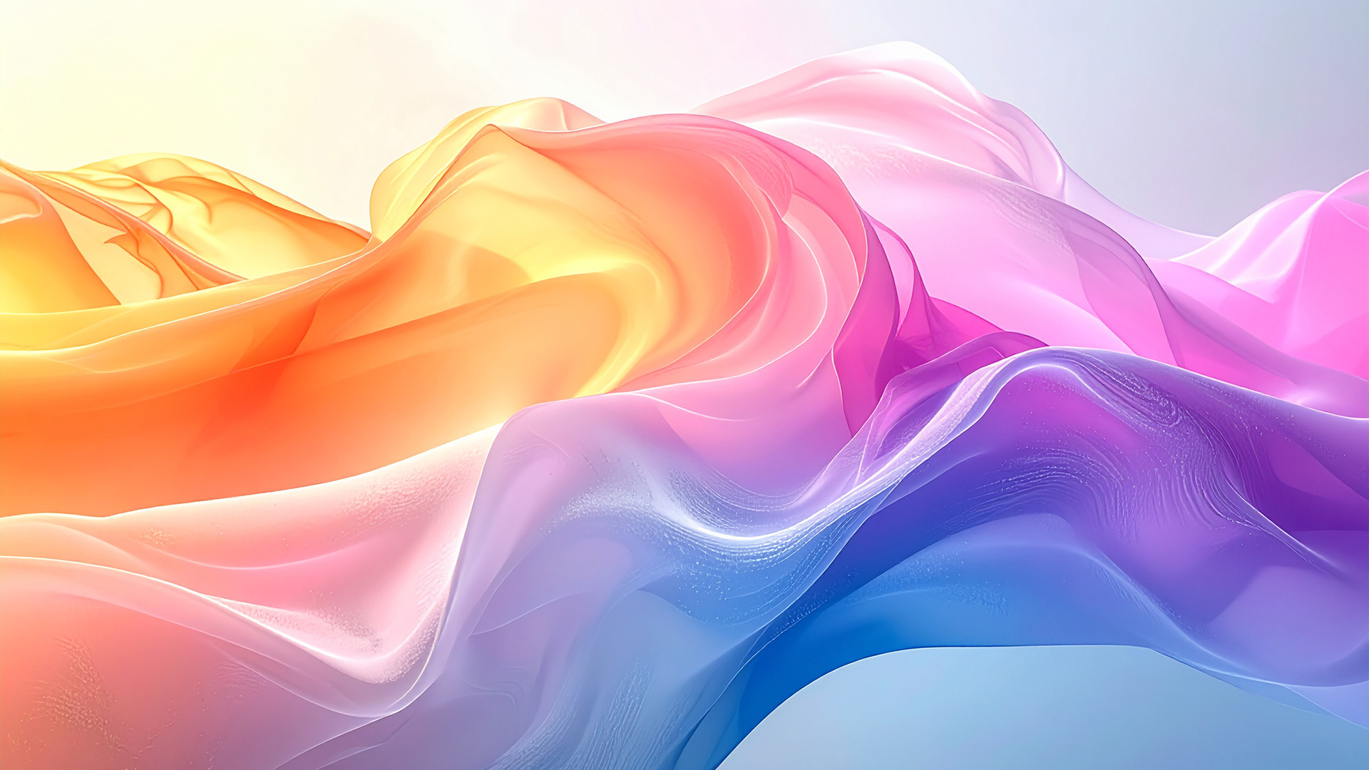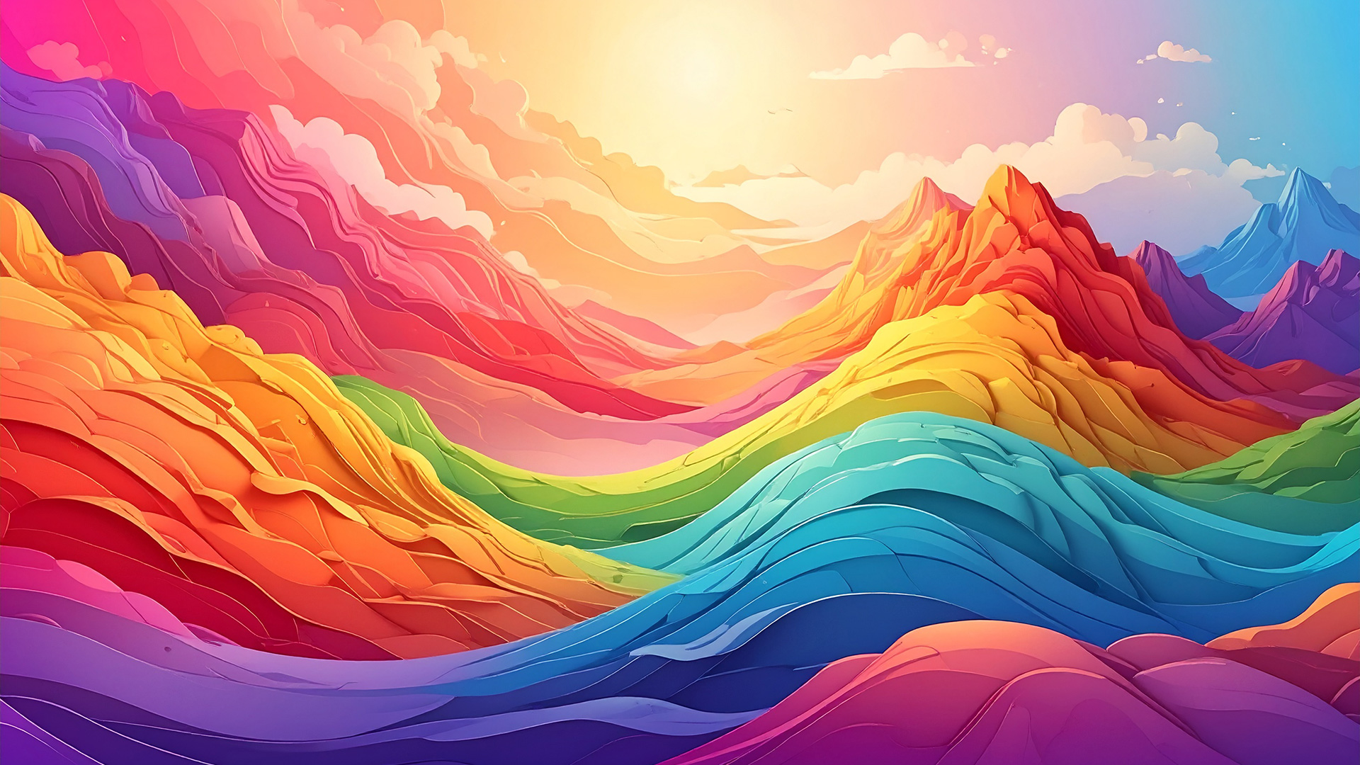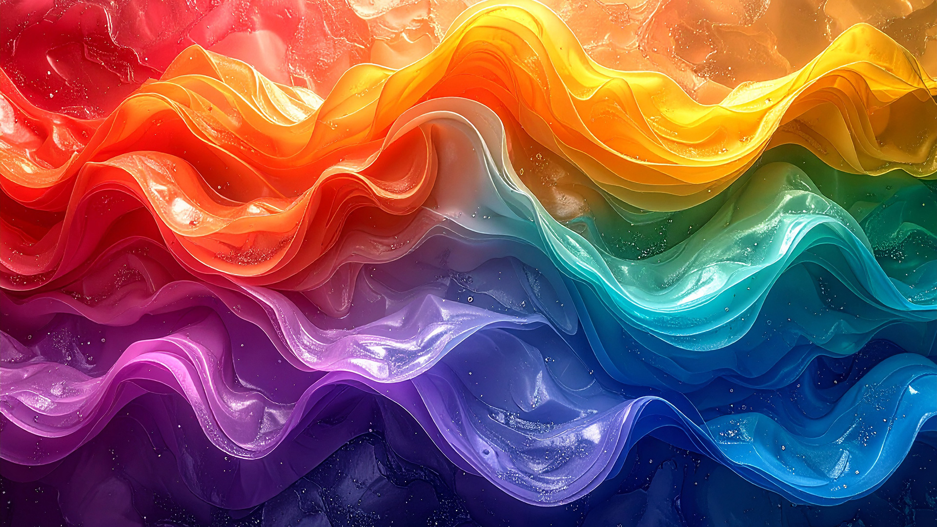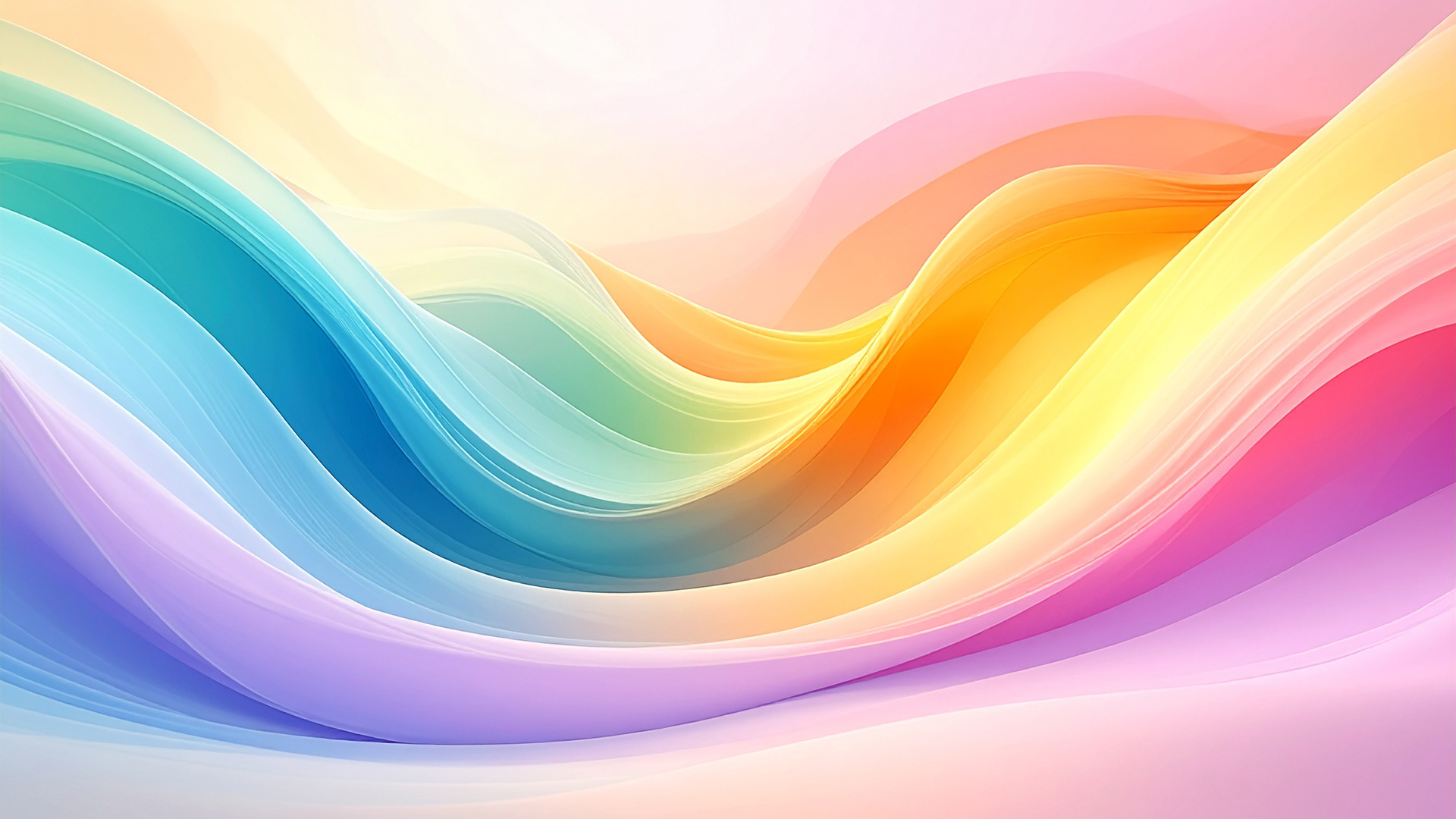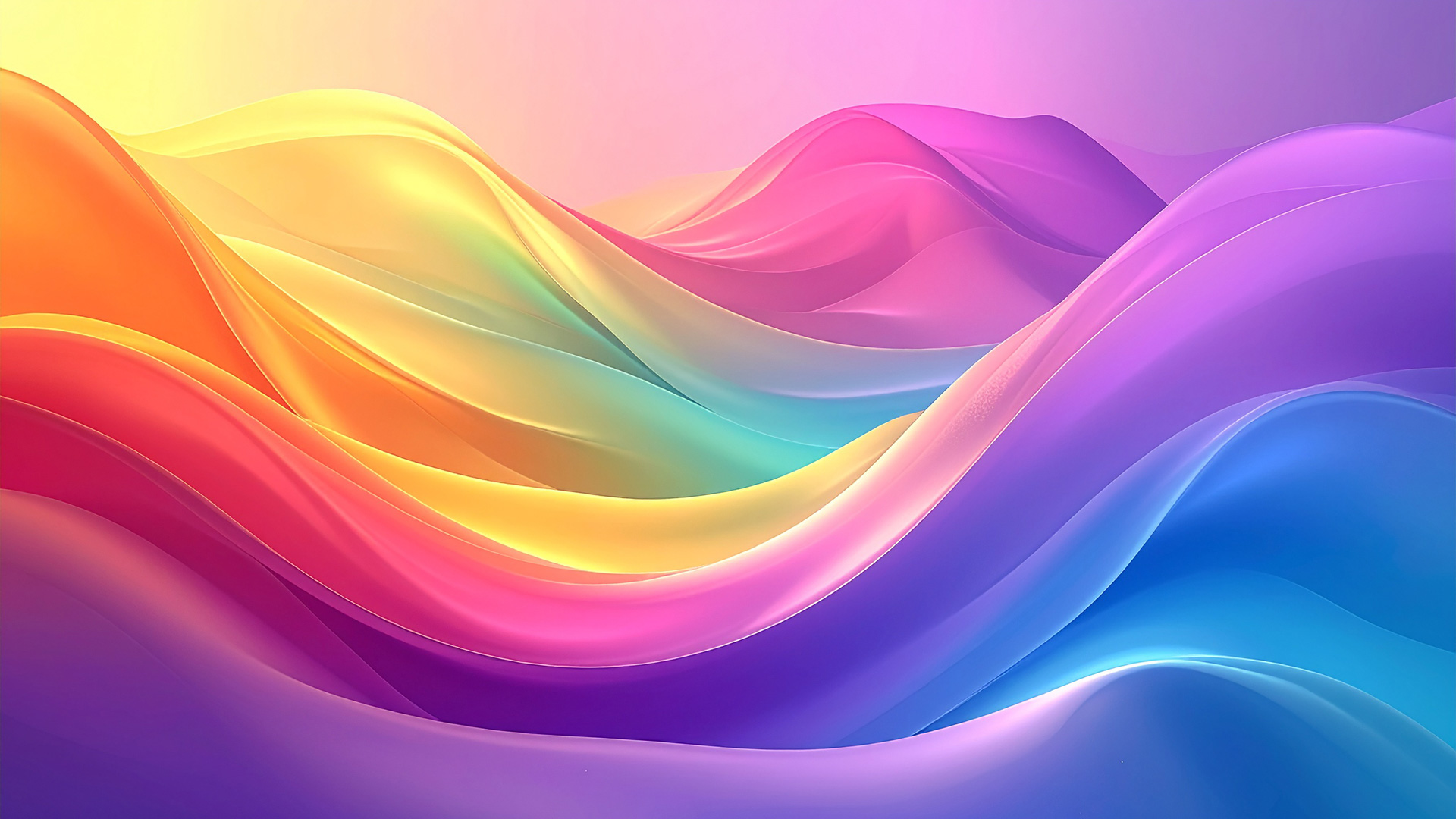 滑らかな曲線と鮮烈な色彩が織りなす、スタイリッシュな虹色の背景素材です。光り輝くレインボーカラーのグラデーションが、見る人の視線を惹きつけます。この高解像度な1920×1080ピクセルのフルHDサイズ画像は、PCの壁紙やWebサイトのメインビジュアルに最適です。キレイでおしゃれなデザインは、クリエイティブな印象を与えたい場面で活躍します。登録不要ですぐにダウンロードでき、商用OKなので、幅広い用途で安心してご利用いただける無料のイラストです。