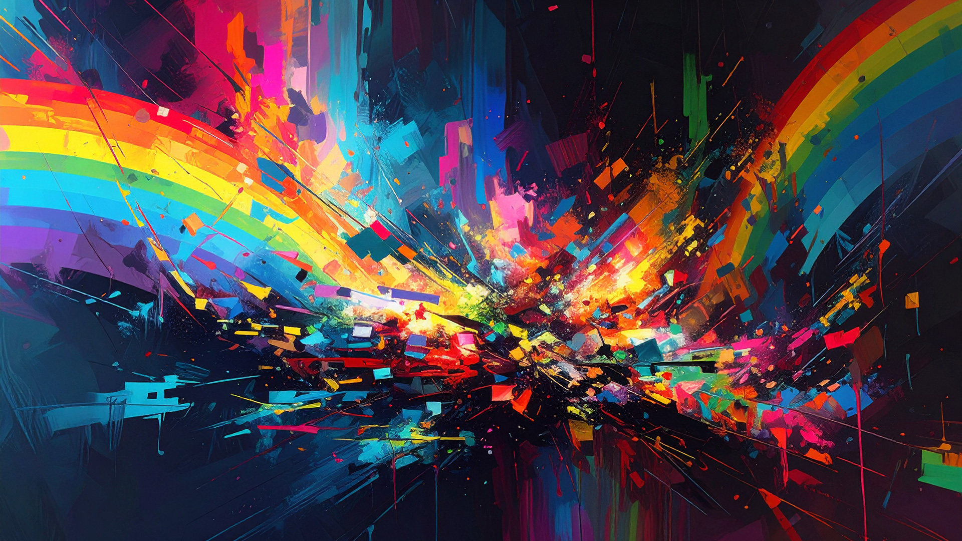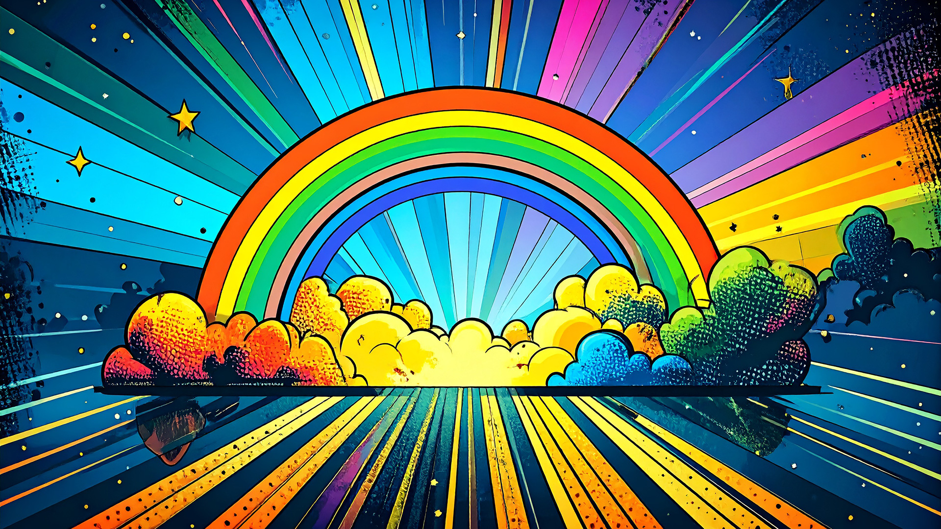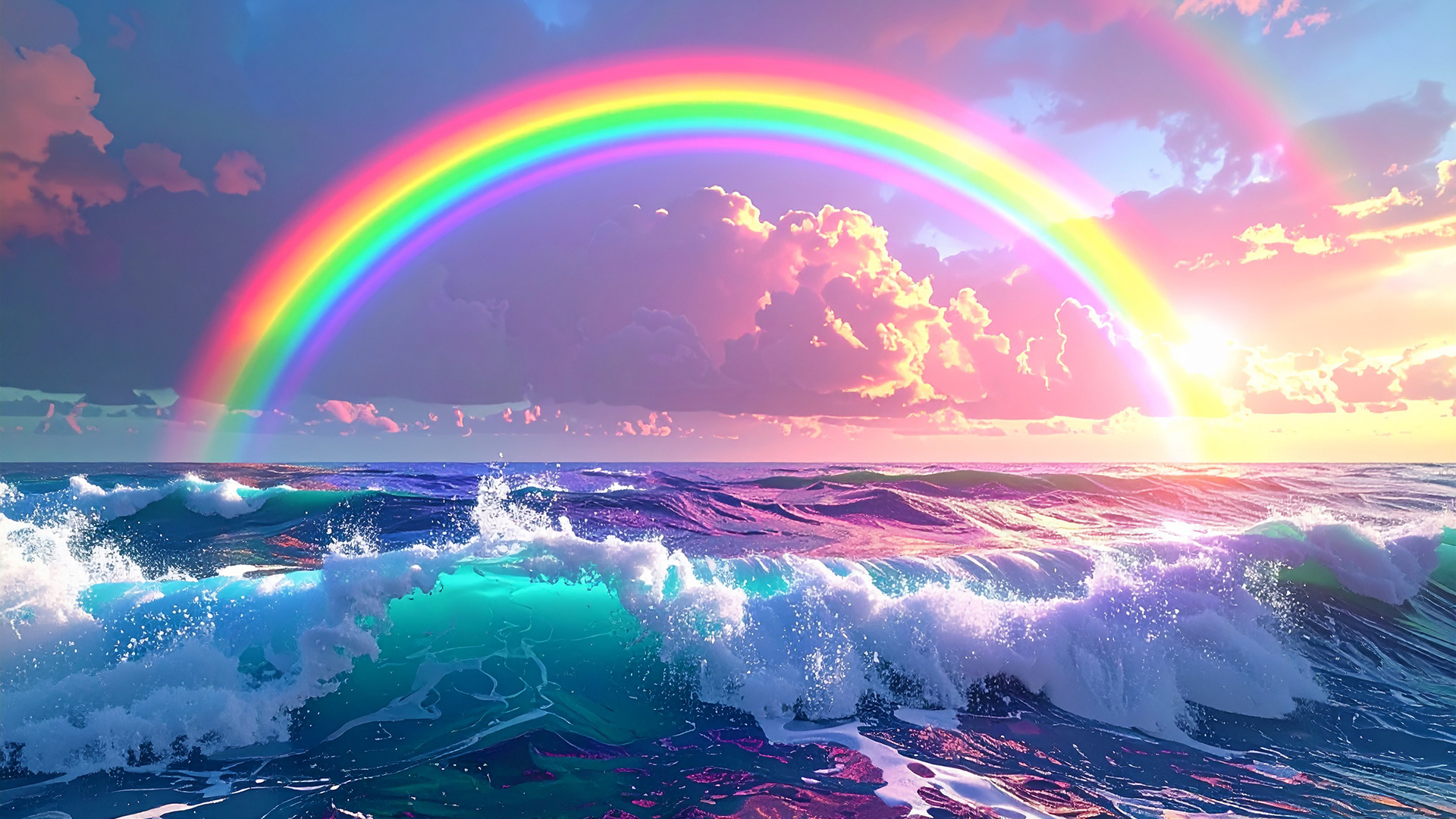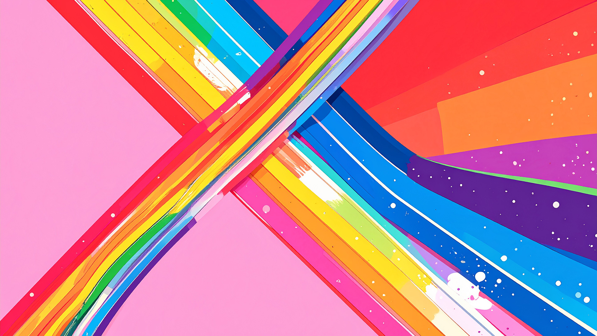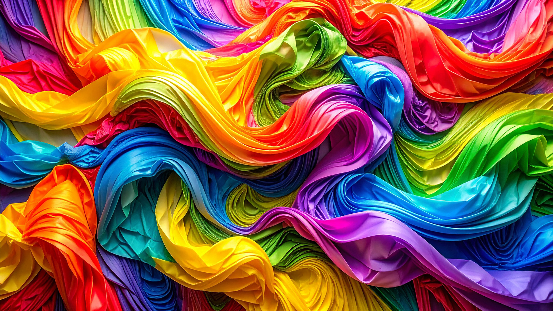 滑らかな曲線と鮮烈な色彩が織りなす、スタイリッシュな虹色の背景素材です。光り輝くレインボーカラーのグラデーションが、見る人の視線を惹きつけます。この高解像度な1920×1080ピクセルのフルHDサイズ画像は、PCの壁紙やWebサイトのメインビジュアルに最適です。キレイでおしゃれなデザインは、クリエイティブな印象を与えたい場面で活躍します。登録不要ですぐにダウンロードでき、商用OKなので、幅広い用途で安心してご利用いただける無料のイラストです。