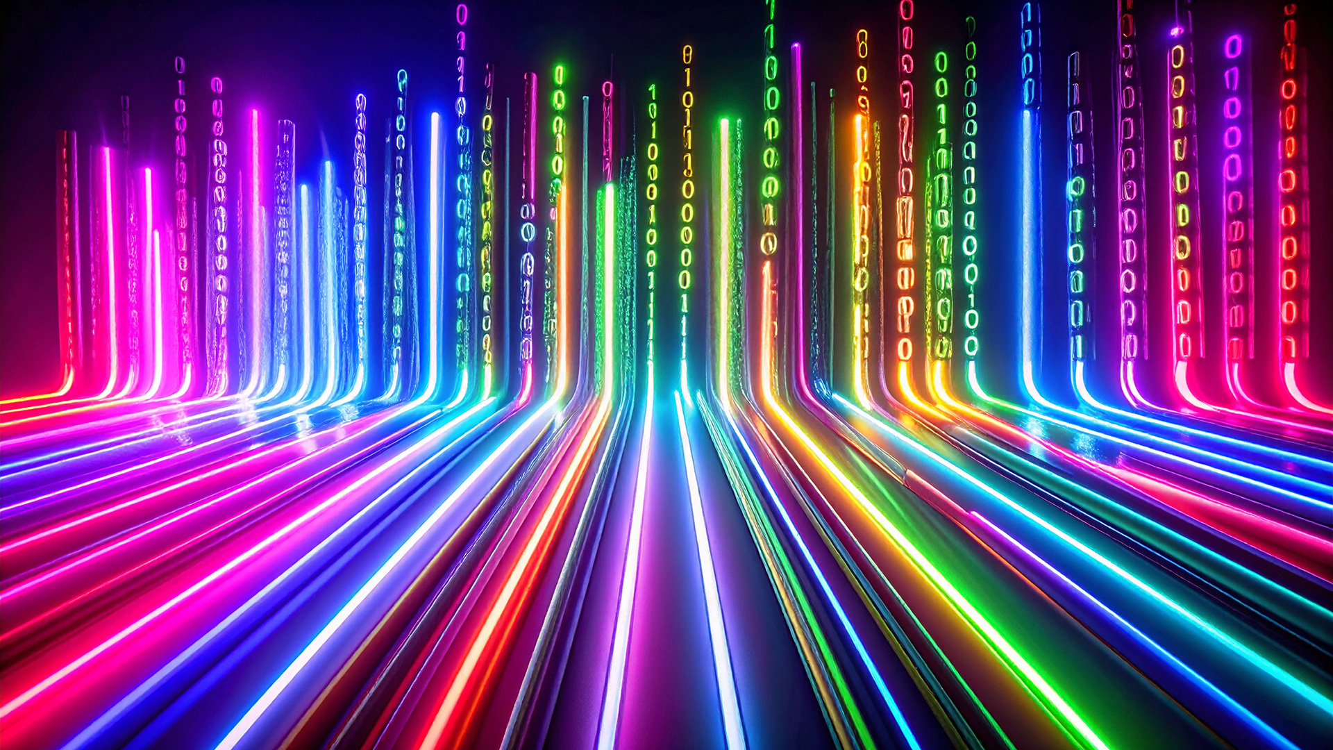 鮮やかな光の曲線が美しい虹色ウェーブの背景素材