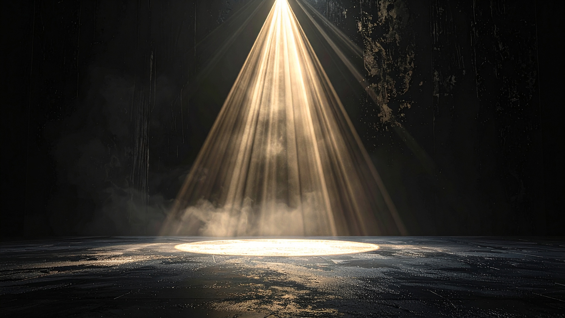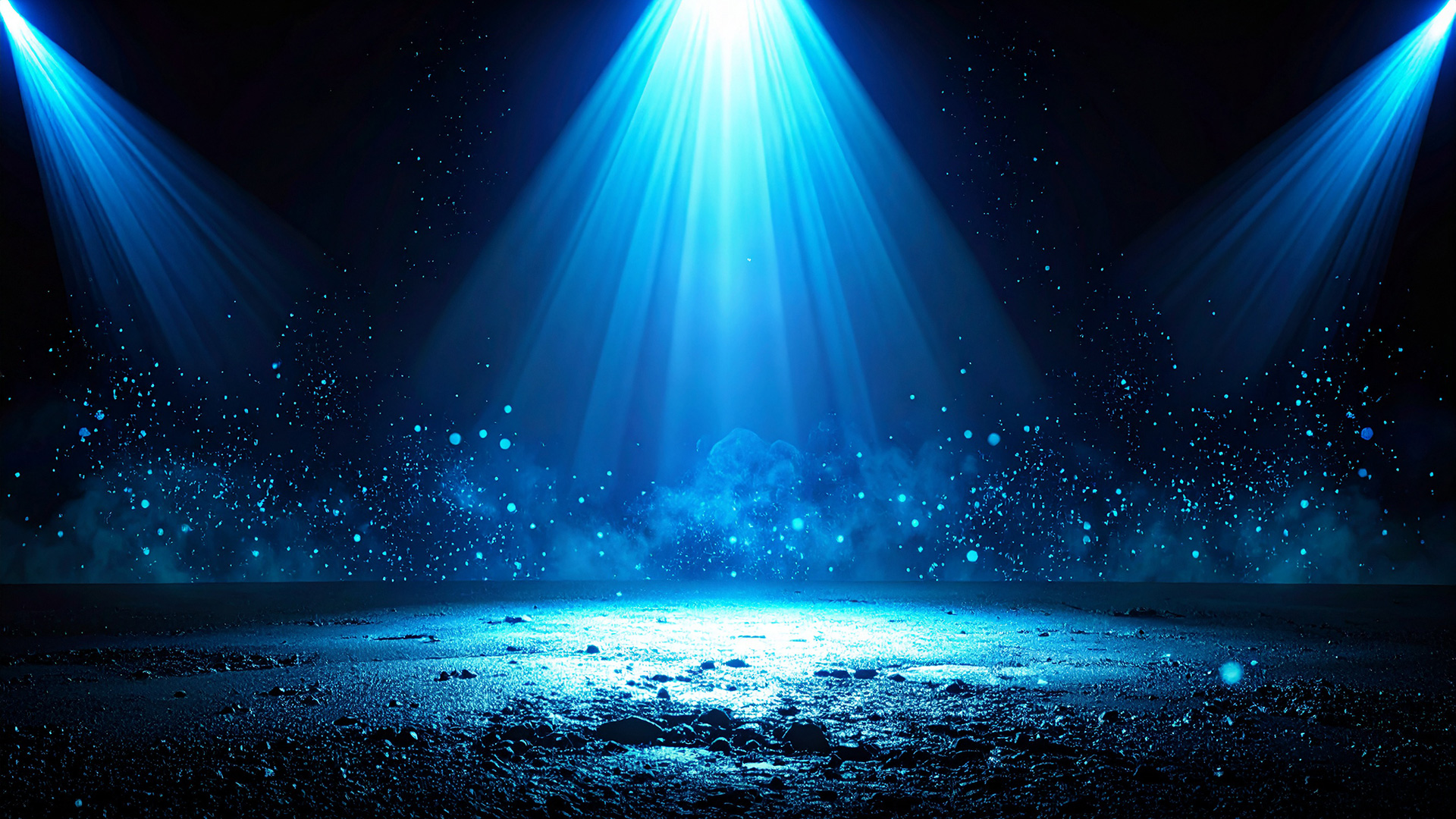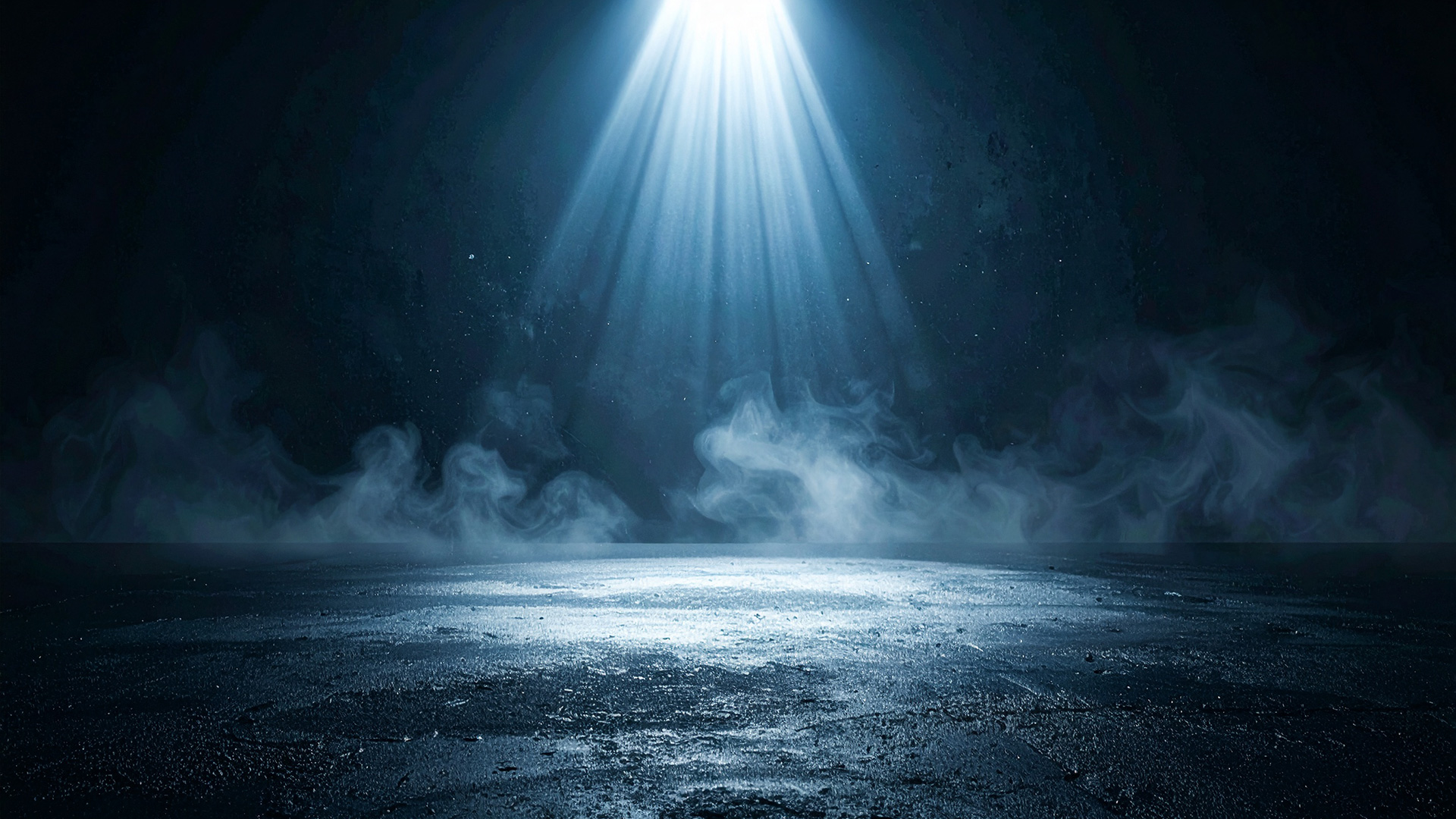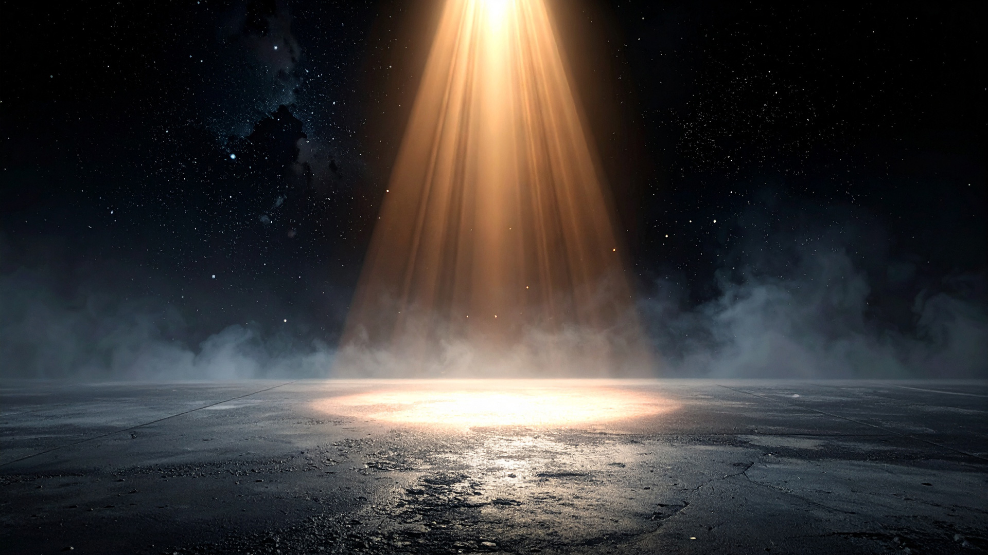 暗闇に浮かぶ幻想的なスポットライトと光の粒子の背景素材