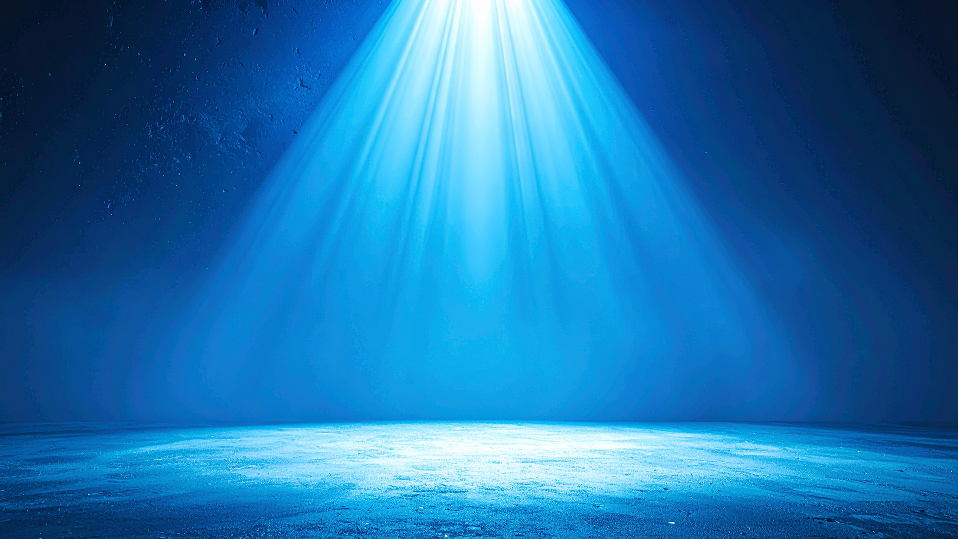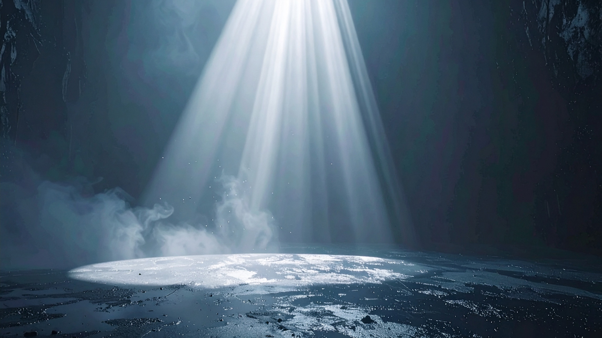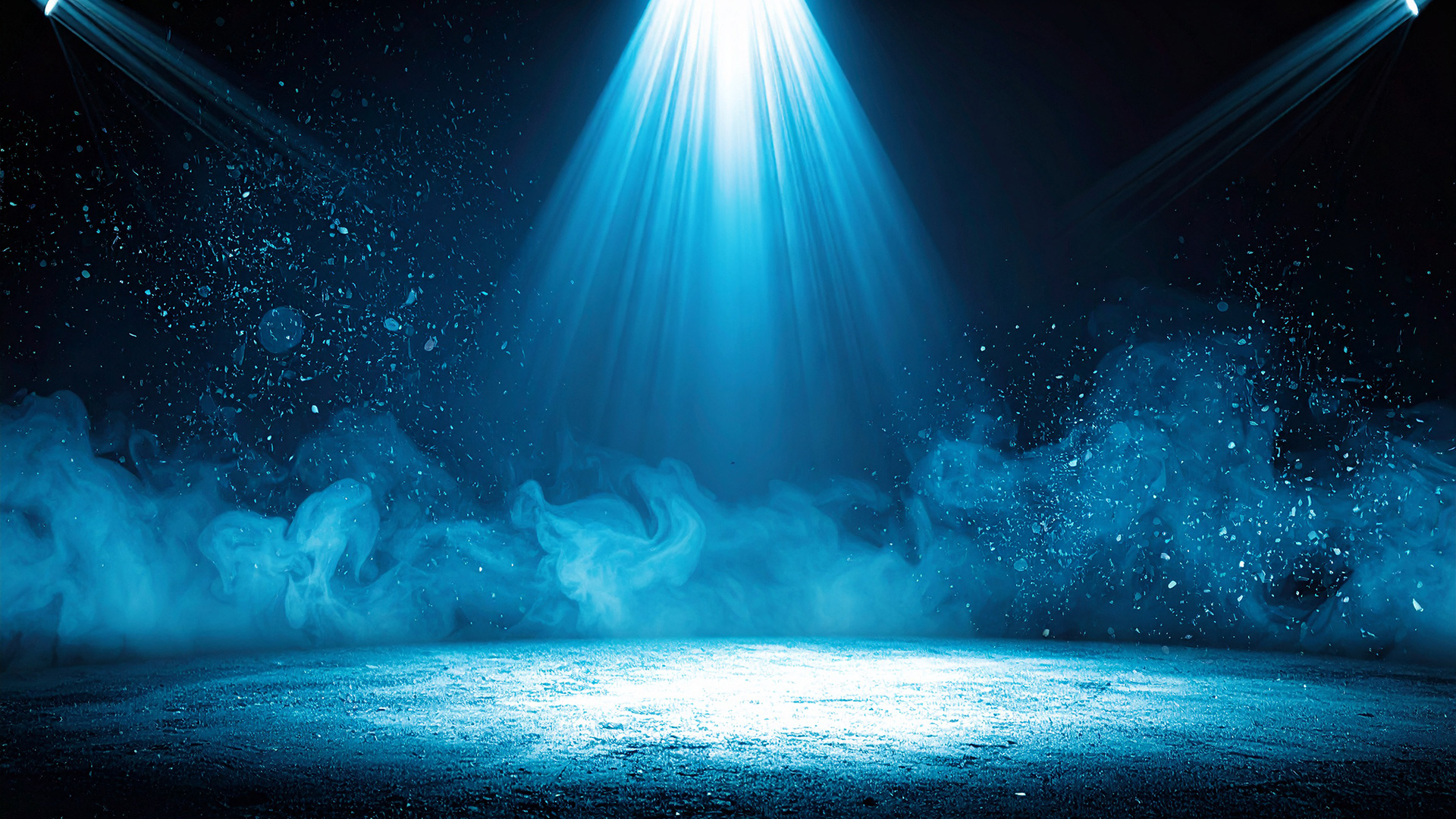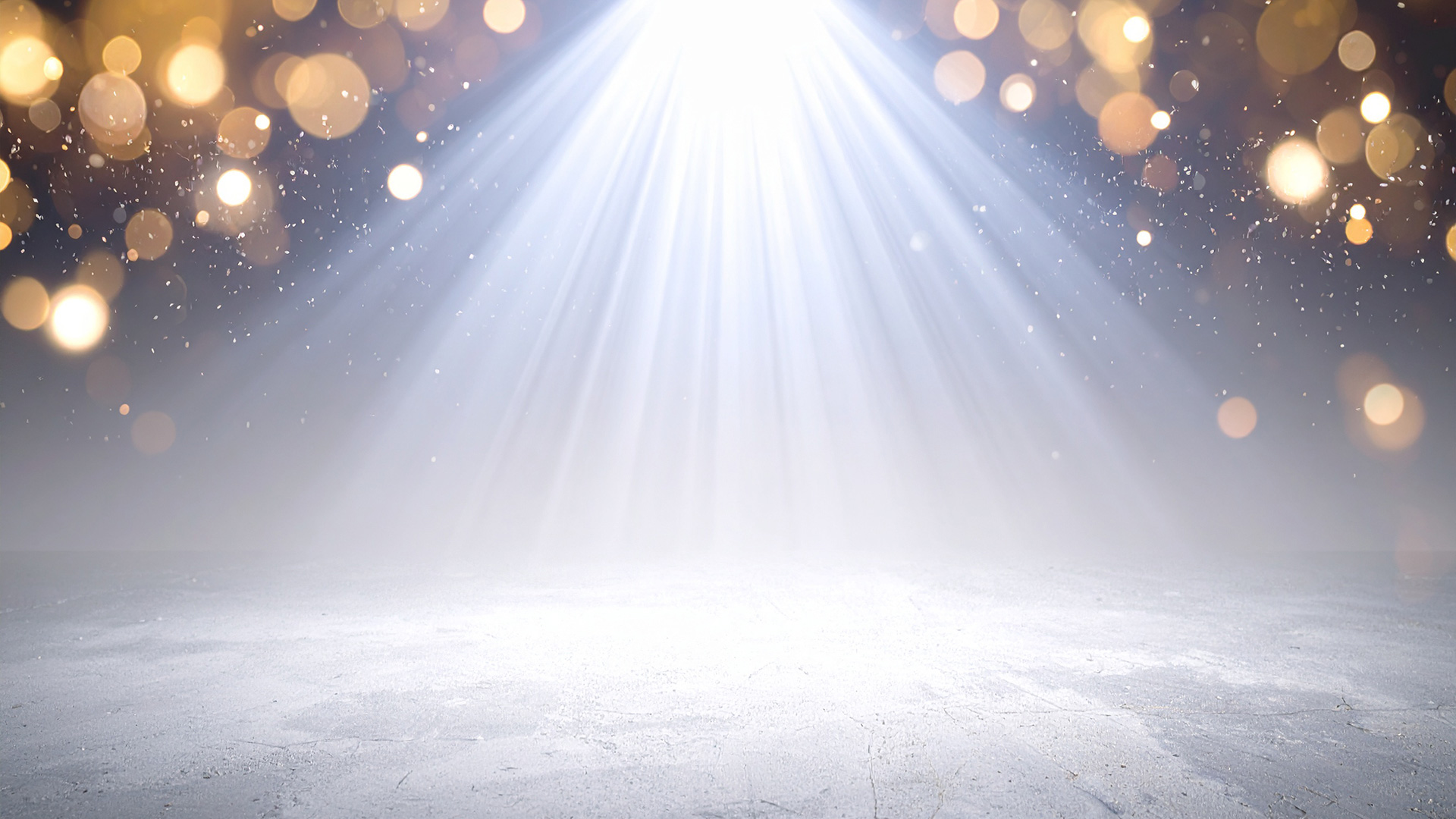 暗闇に浮かぶ幻想的なスポットライトと光の粒子の背景素材