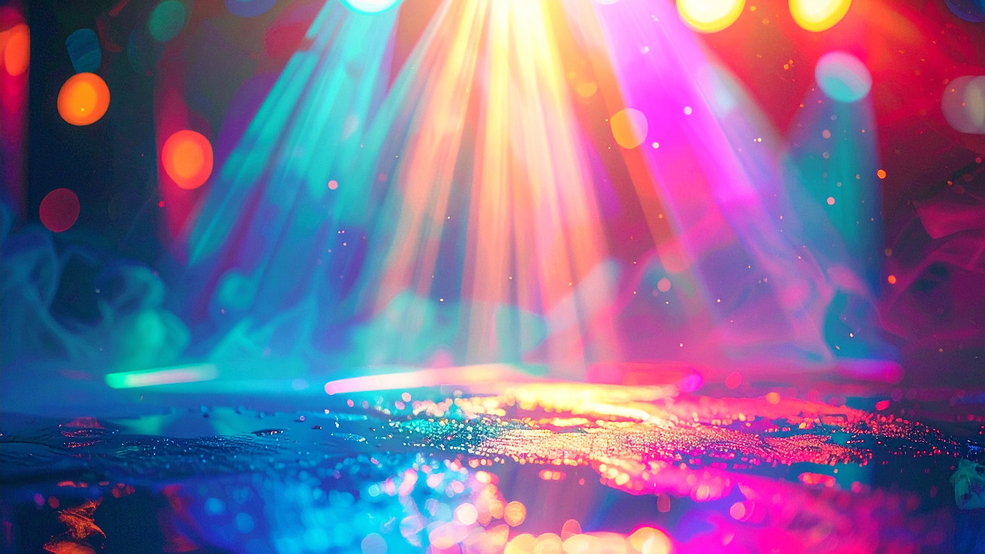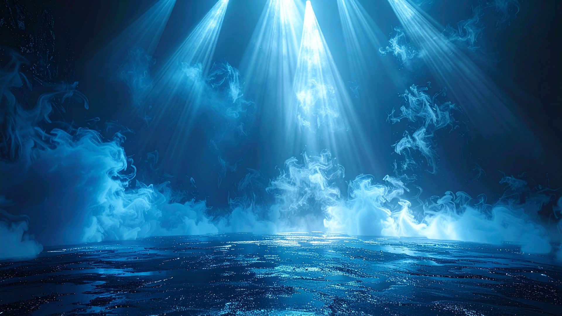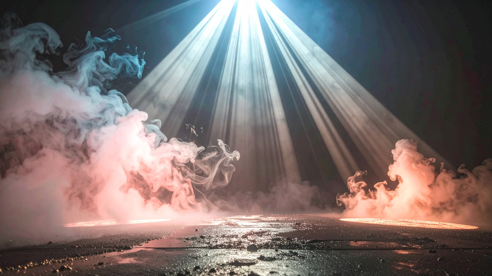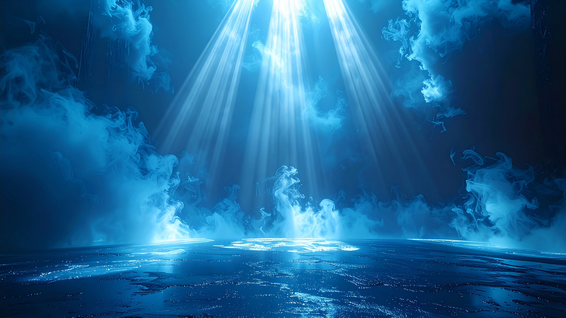 暗闇に浮かぶ幻想的なスポットライトと光の粒子の背景素材