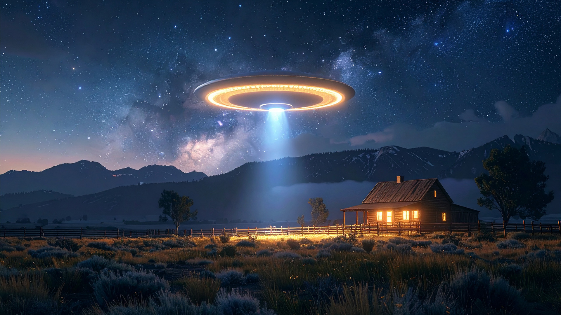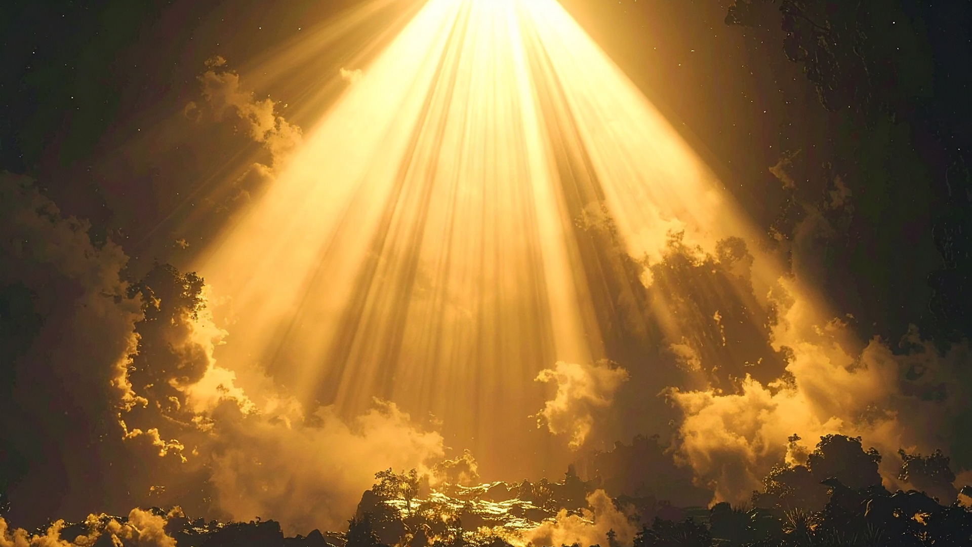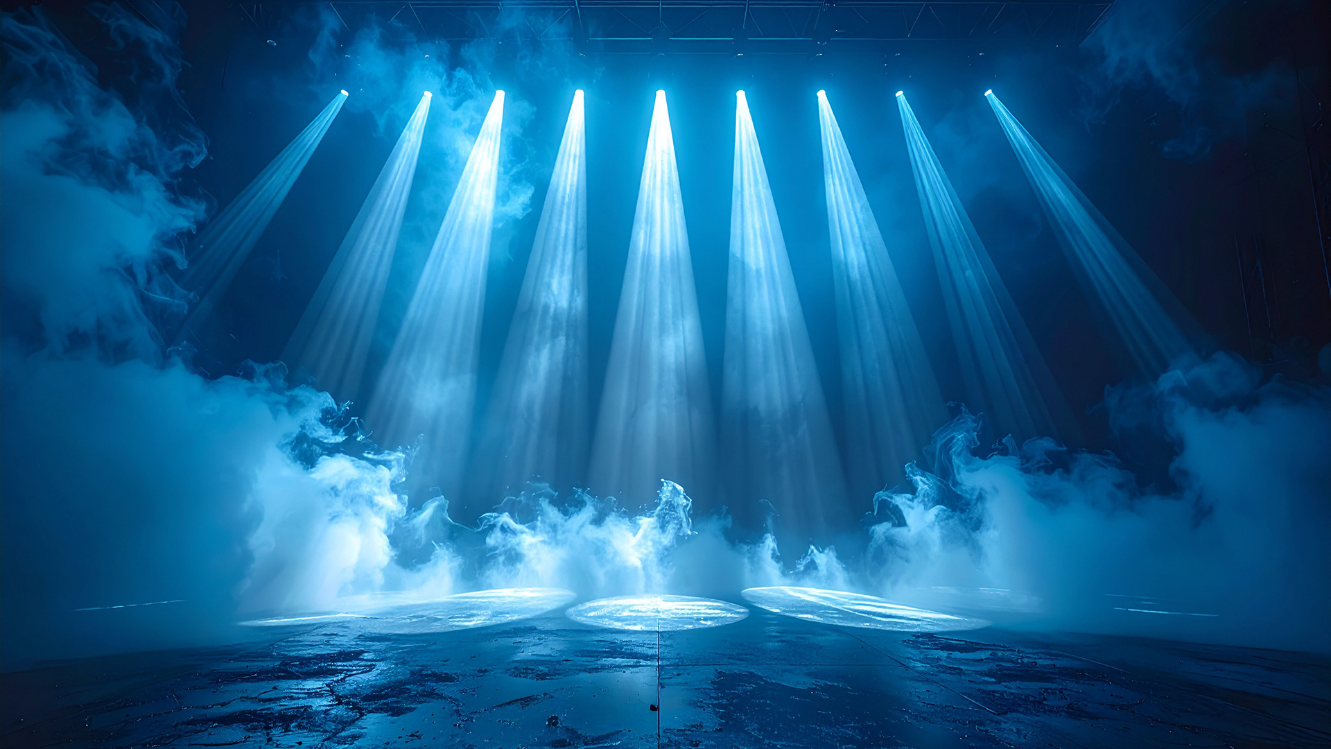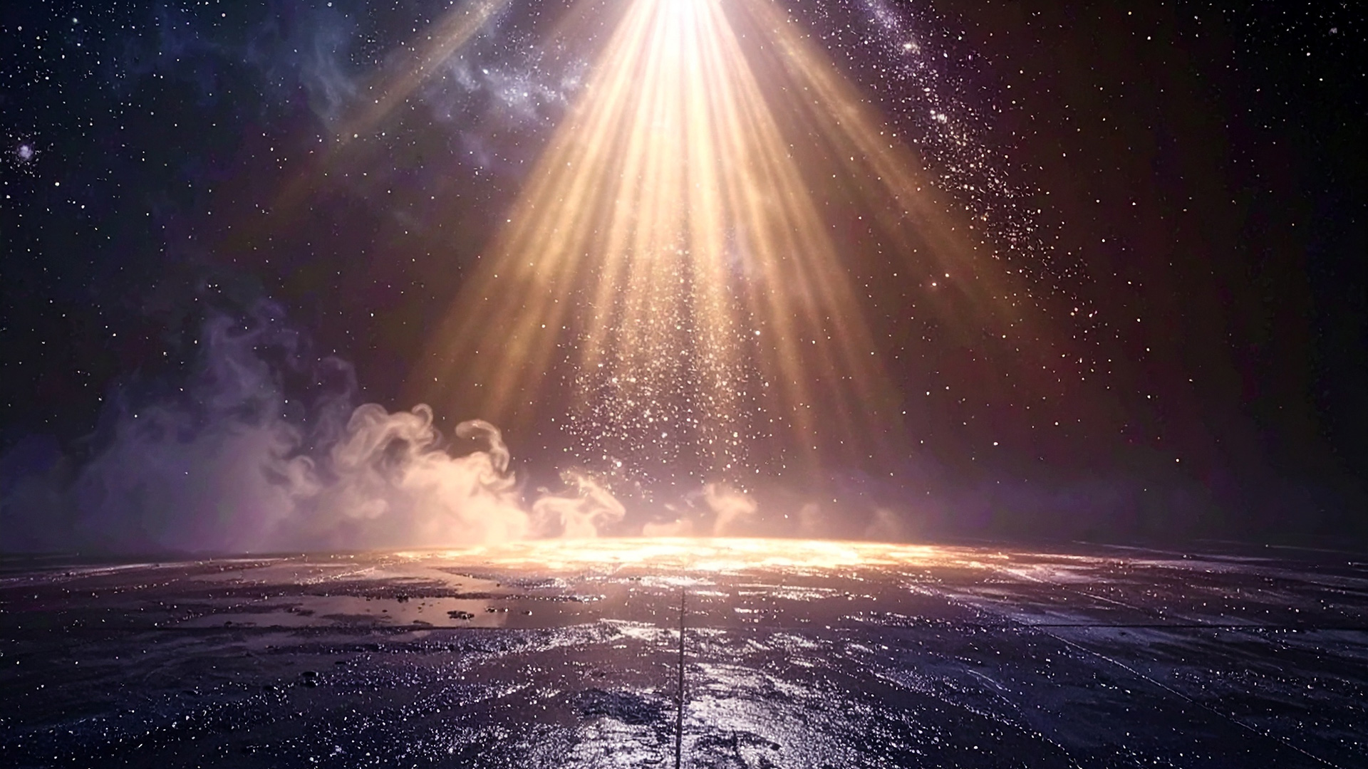 暗闇に浮かぶ幻想的なスポットライトと光の粒子の背景素材