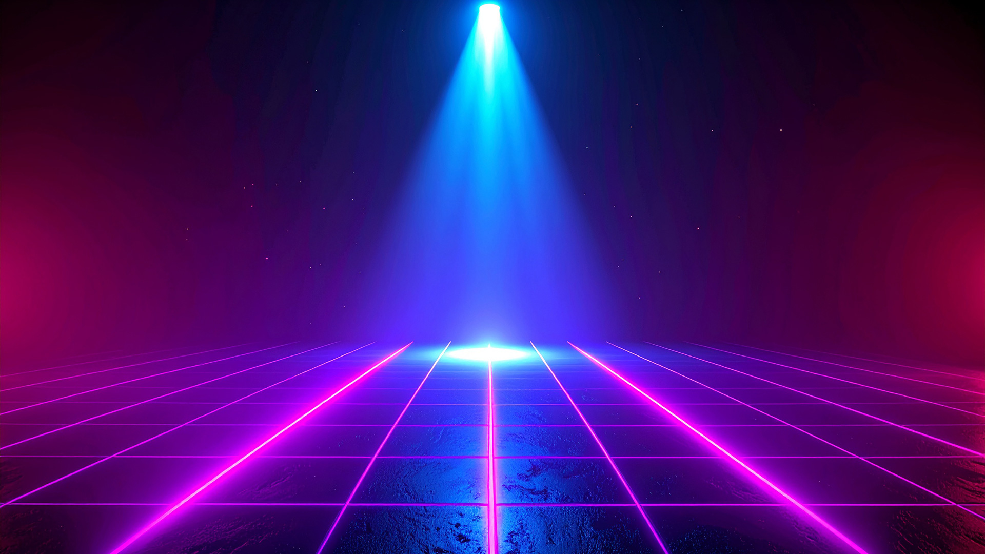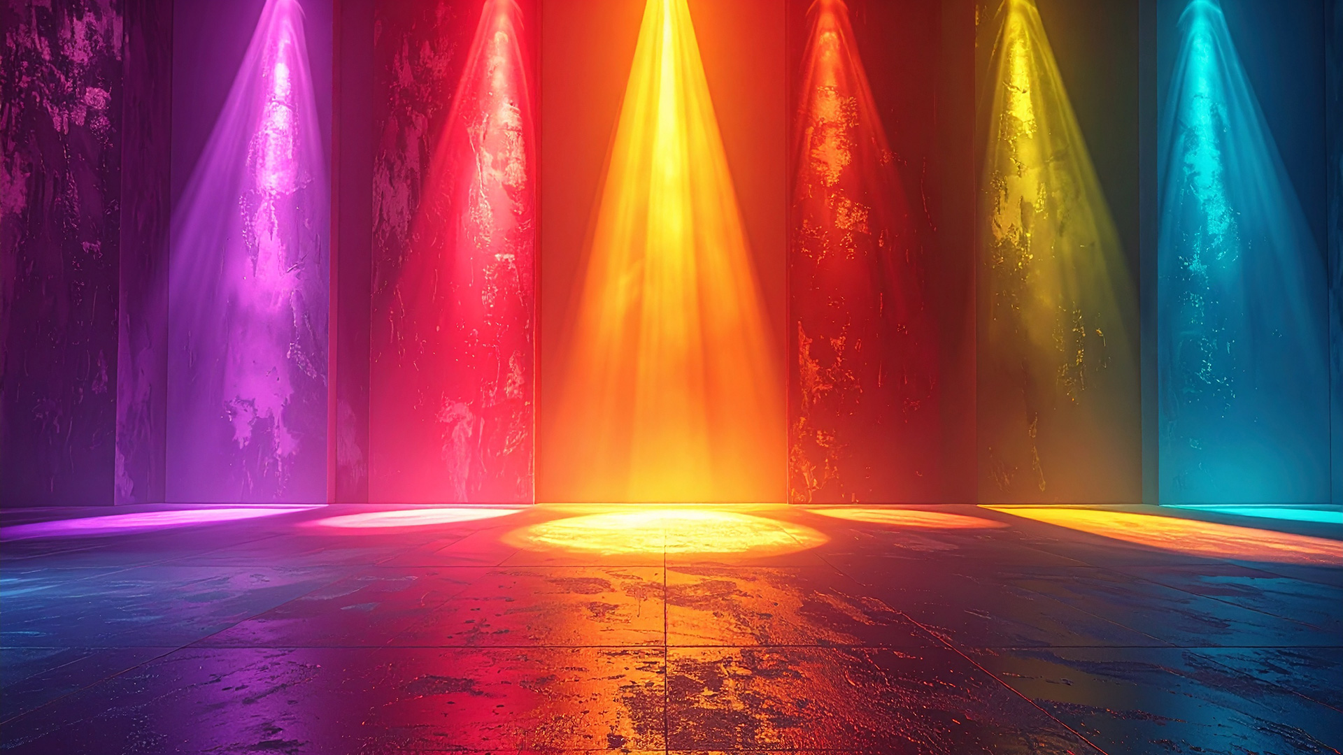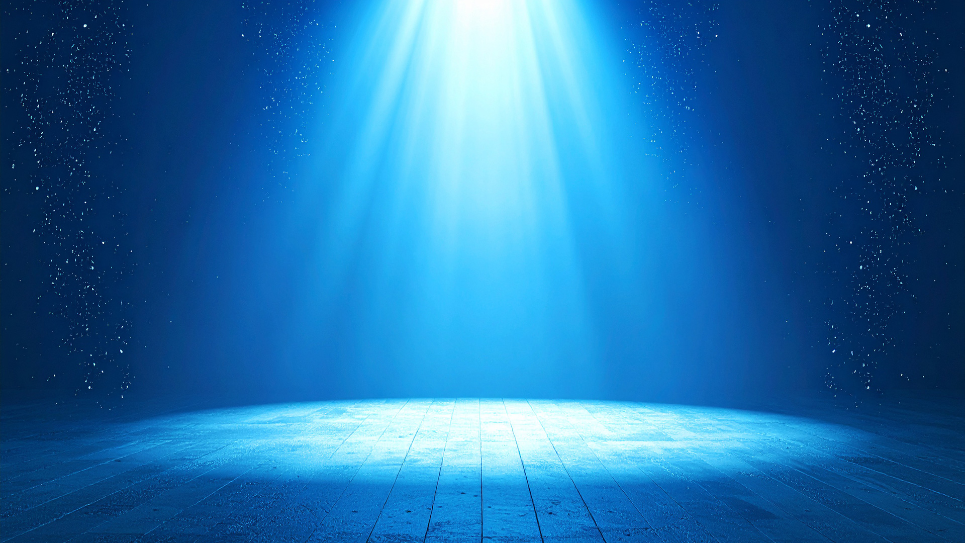 暗闇の中で一筋の光が差し込む、シンプルかつドラマチックなステージ風のイラストです。フロアに散りばめられたキラキラとした光の粒子が、幻想的でかっこいい空間を演出します。余計な要素を削ぎ落としたデザインは、被写体やテキストを際立たせるバックグラウンドとして最適です。1920×1080ピクセルのフルHDサイズで提供されており、Webサイトのヒーローイメージや、プレゼンテーション資料の表紙など、ビジネスシーンでも使いやすい高解像度データです。