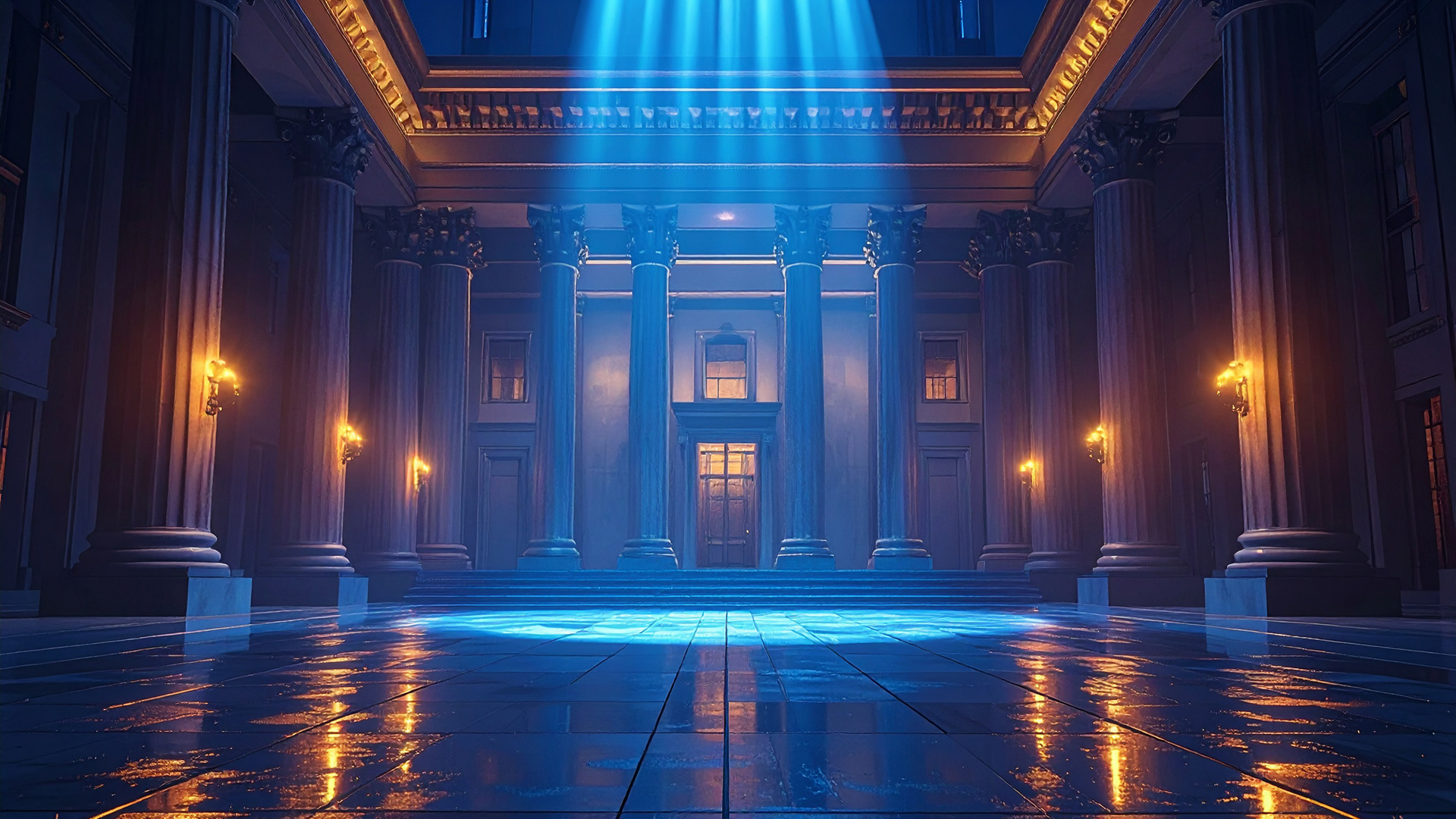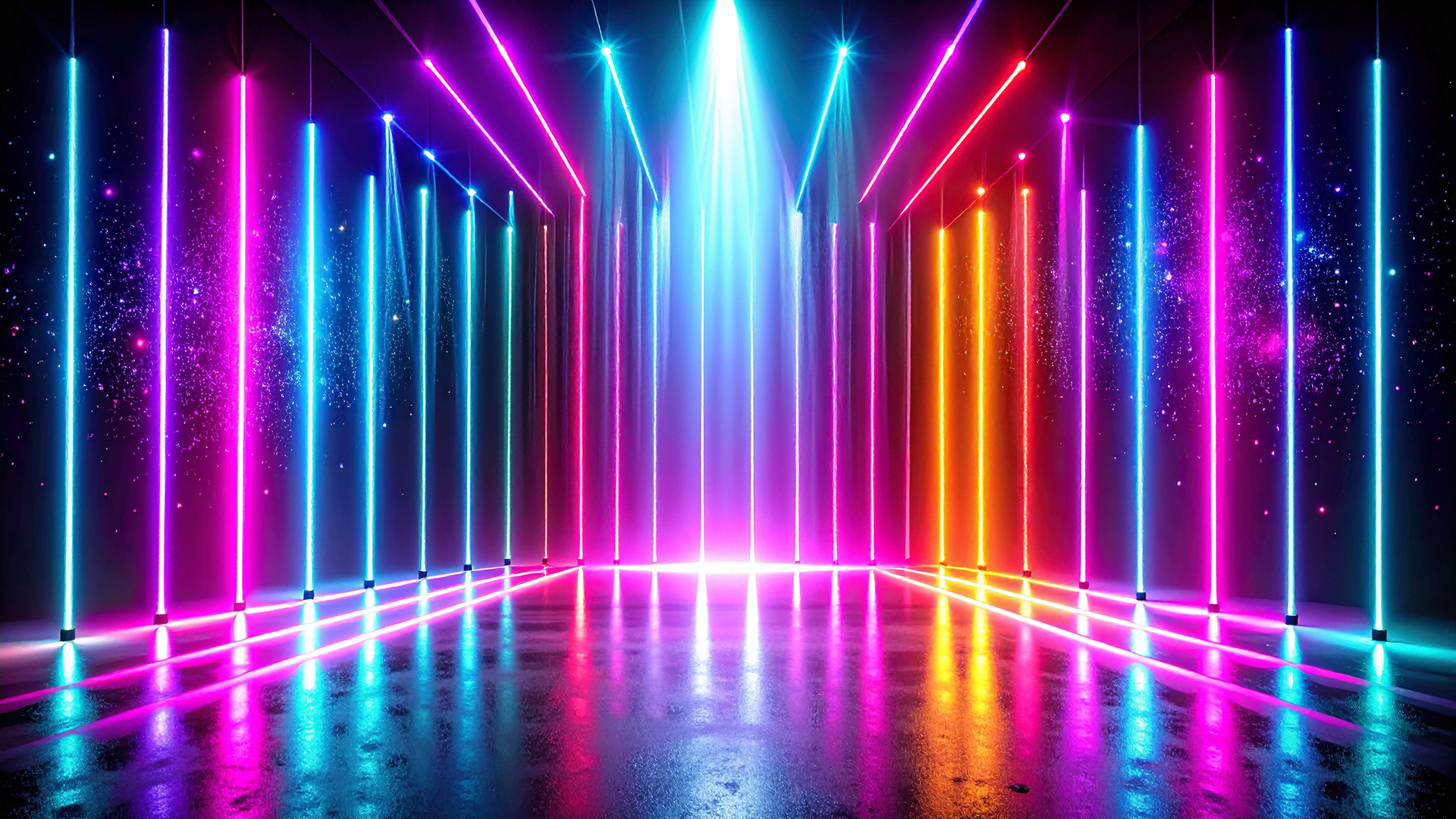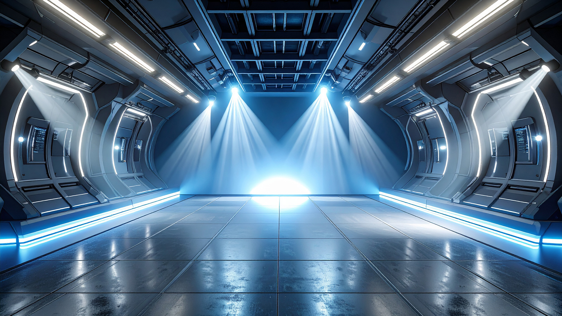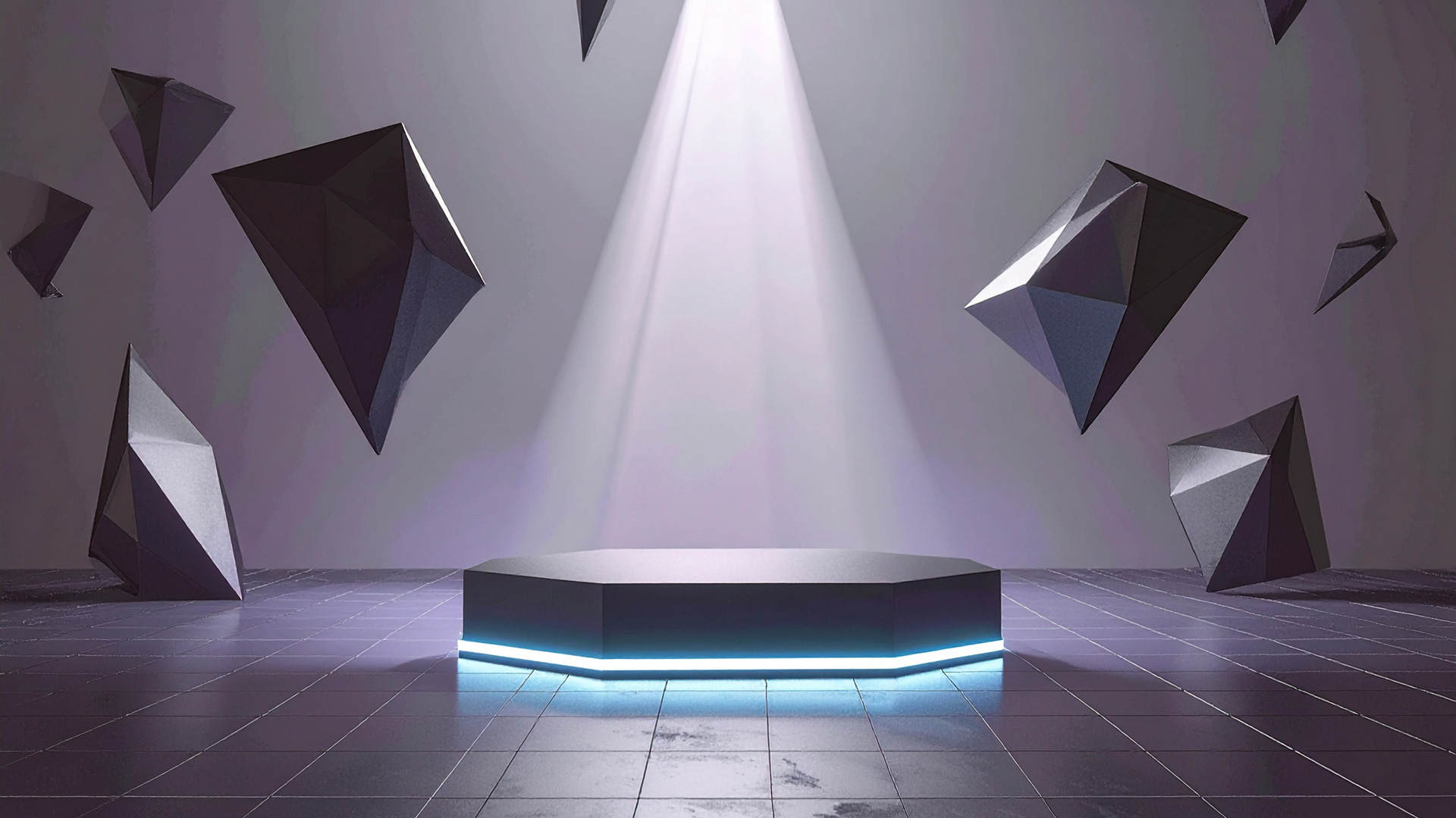 暗闇の中で一筋の光が差し込む、シンプルかつドラマチックなステージ風のイラストです。フロアに散りばめられたキラキラとした光の粒子が、幻想的でかっこいい空間を演出します。余計な要素を削ぎ落としたデザインは、被写体やテキストを際立たせるバックグラウンドとして最適です。1920×1080ピクセルのフルHDサイズで提供されており、Webサイトのヒーローイメージや、プレゼンテーション資料の表紙など、ビジネスシーンでも使いやすい高解像度データです。
